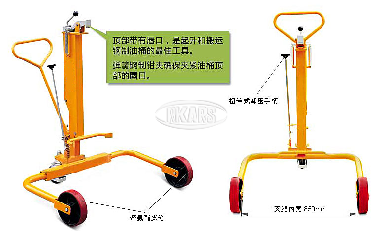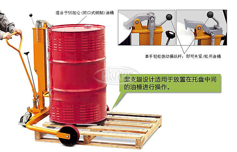 地址:上海市闵行区虹梅南路4289号宽支腿液压式油桶搬运车