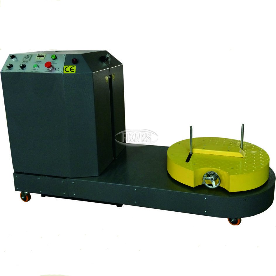 8,一般行李包3—5层即可!包装完毕后,操作人员手工切断薄膜,然后取走行李。