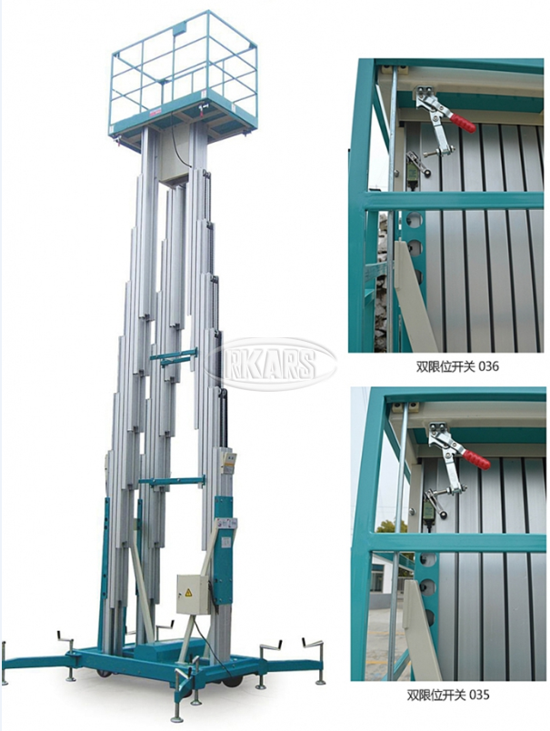 • 电气发生意外故障时,地面和高空作业人员均可操作急停按钮使平台停止升降;